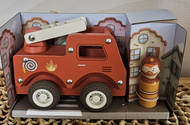Deze robuuste houten brandweerwagen is een must-have voor kleine helden die klaarstaan om te helpen.