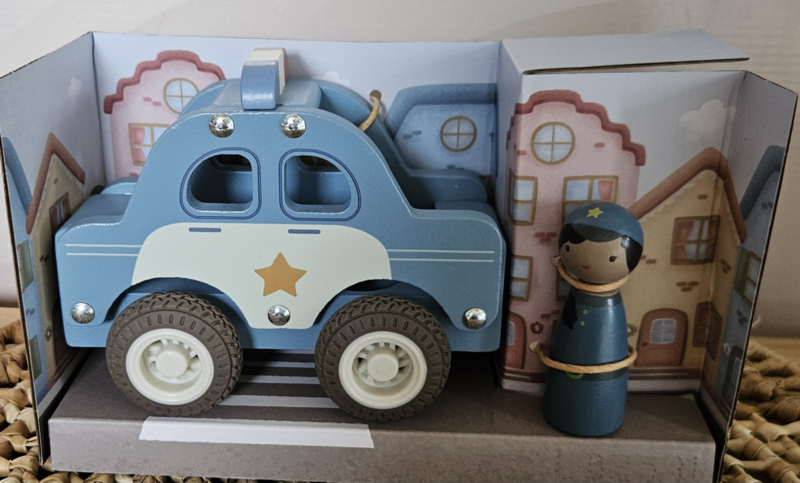 OverzichtLittle Dutch houten politiewagen met poppetje (met naam)