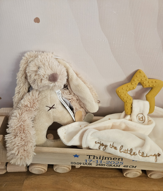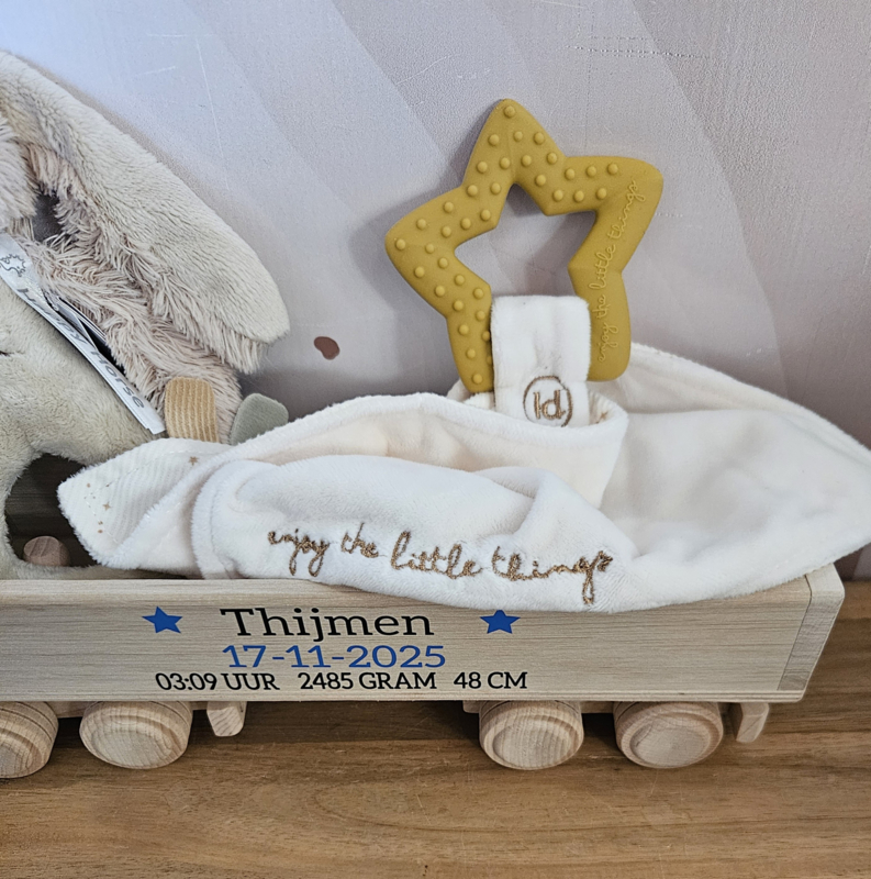 Leuk om het persoonlijk en origineel te maken door de naam en/of de geboortegegevens erop te zetten.