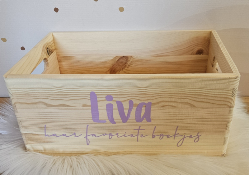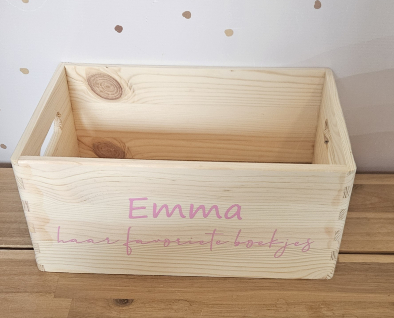 Stel daarom zelf je pakket samen met deze leuke houten kistjes met naam (en geboortedatum).