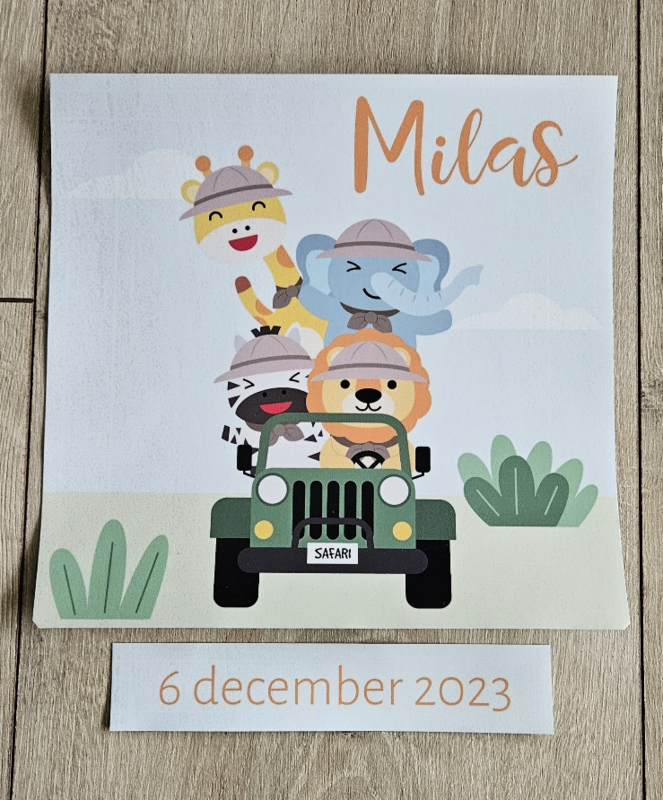 Wij maken voor u het ontwerp, u hoeft zelf niets te doen en alleen maar het kaartje toe te sturen, het maakt niet uit of een kaartje rechthoekig of langwerpig is , onze ontwerper maakt het precies op maat zodat het mooi op het stoeltje past. Wij plaatsen automatisch naam en geboortedatum op de sticker, ook al staat de datum aan de binnenzijde van het geboortekaartje. Wilt u eerst een voorbeeld per mail van ons ontwerp voordat we het maken? Ook dat is mogelijk. Het kaartje krijgt u weer terug samen met de stickerset.