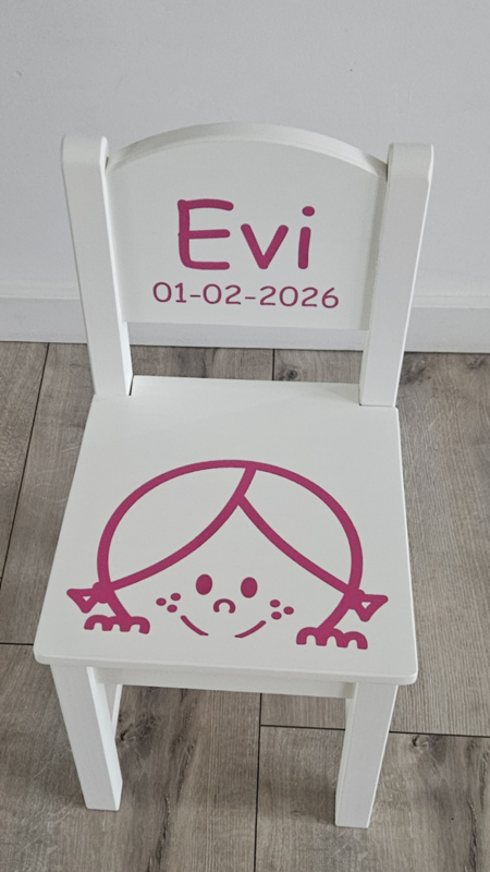 Artikelnummer: 01ST OverzichtStoeltje met naam en meisjeshoofdje