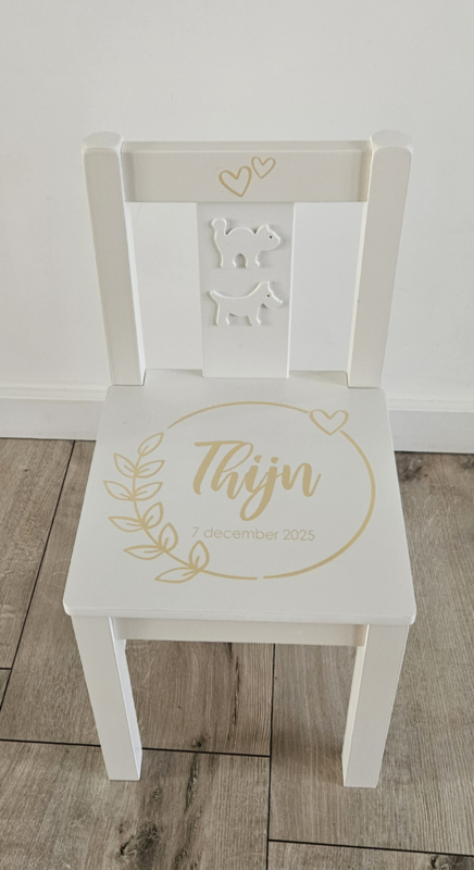 TAGS: Geboortestoeltje, stoel met naam, kraamkado, geboorte stoel, eigen naam op stoel, kraamkado met naam