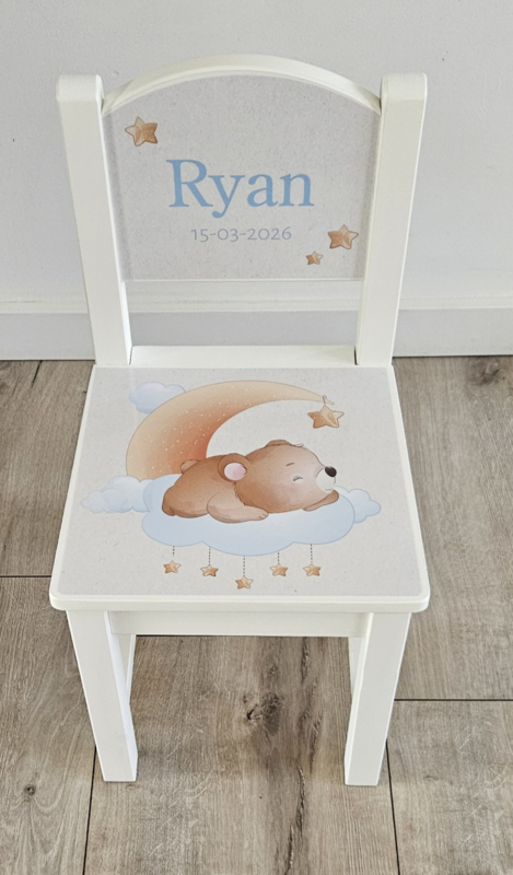 Artikelnummer: 029 OverzichtStoeltje met naam en beertje op wolk