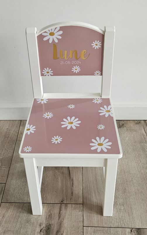 Stoeltje met naam en Madeliefjes