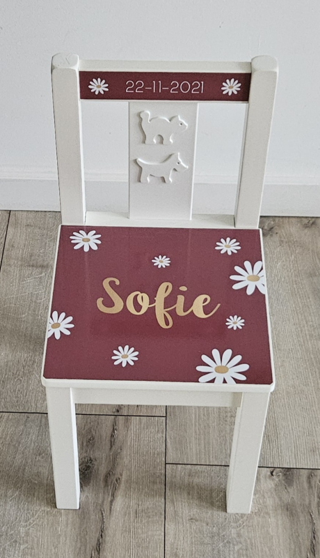 Stoeltje met madeliefjes, naam (en geboortedatum)