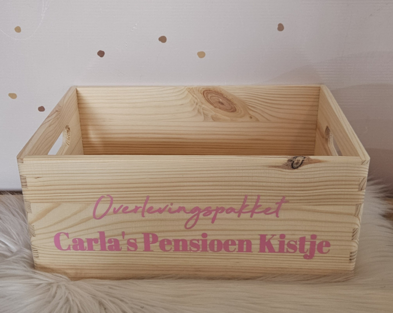 Houten Pensioen kistje met naam