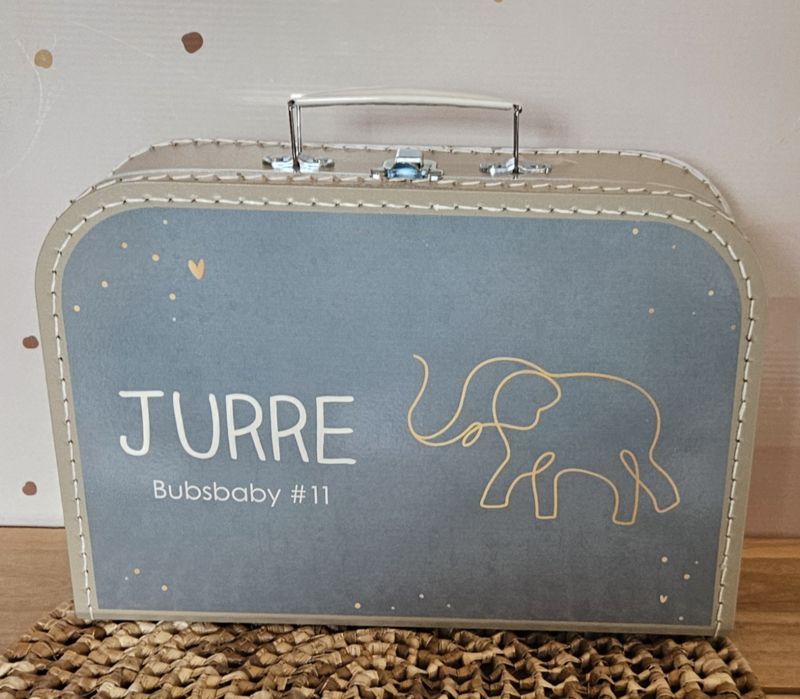 Dit leuke koffertje met naam en het silhouette van een olifant is verkrijgbaar in diverse kleuren en afmetingen.