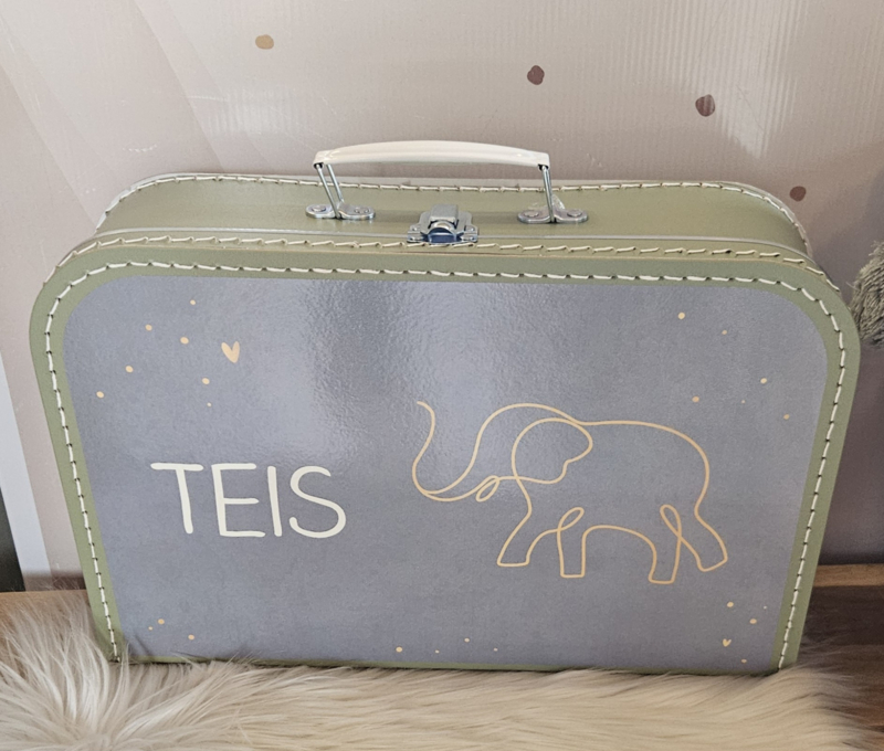 Artikelnummer: 063 OverzichtKoffertje met naam Olifant Silhouette