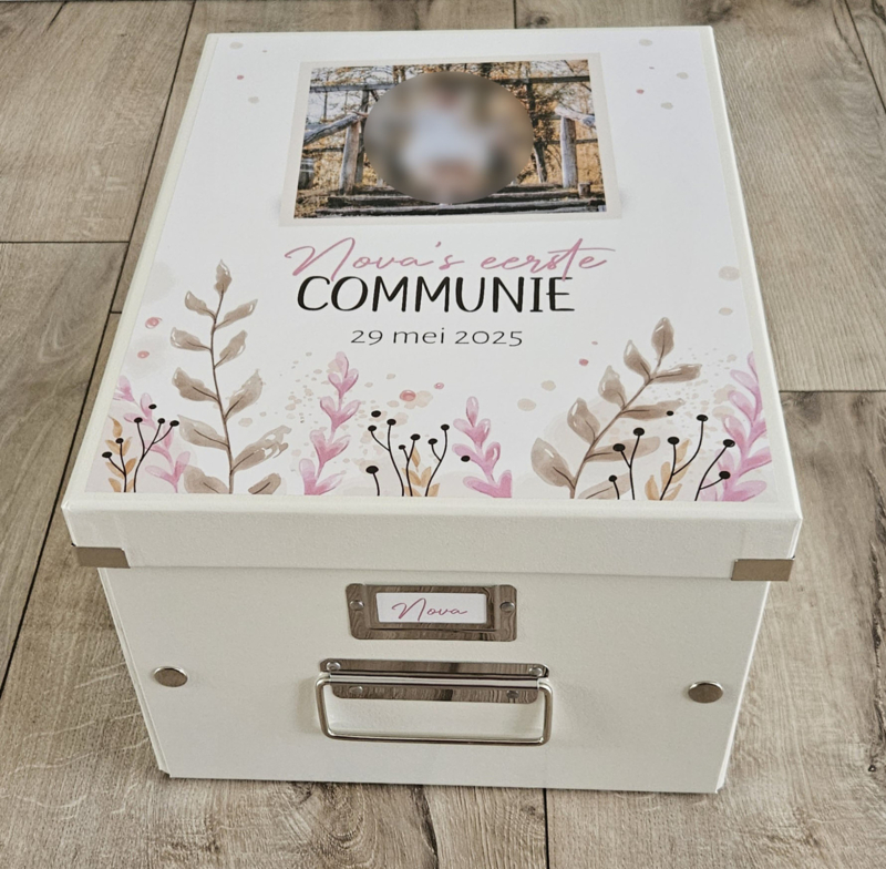 Leuke communie bewaardoos met naam voor de 1e H. Communie ter herinnering.