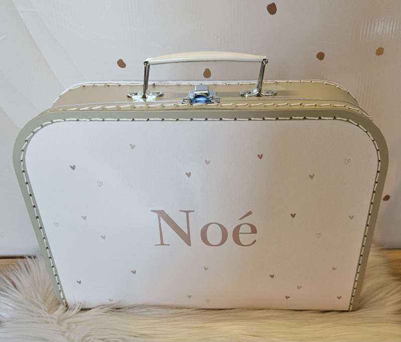 Koffertje met naam Hartjes beige