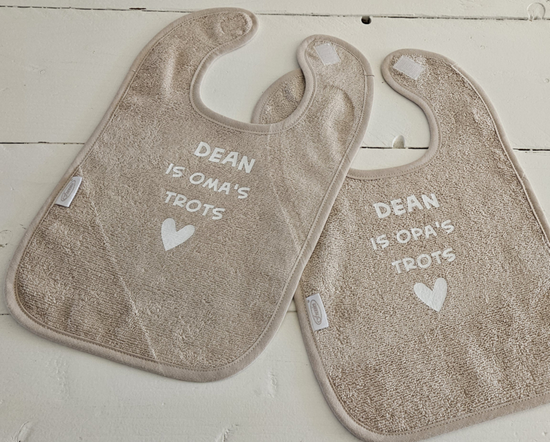 - Een slab met naam is een handig en stijlvol item om de kleintje schoon te houden tijdens de maaltijden, terwijl het ook een persoonlijk tintje toevoegt aan de dagelijkse verzorging.